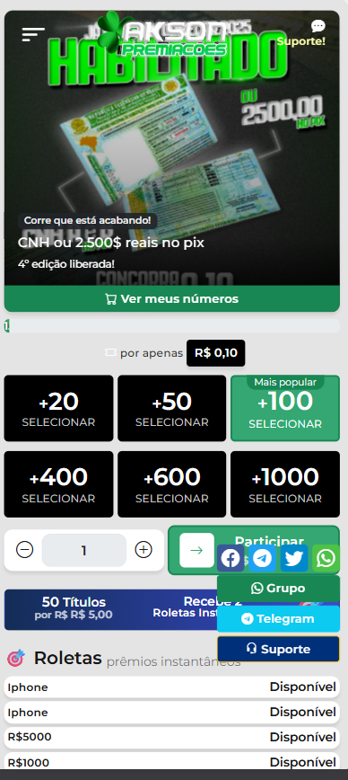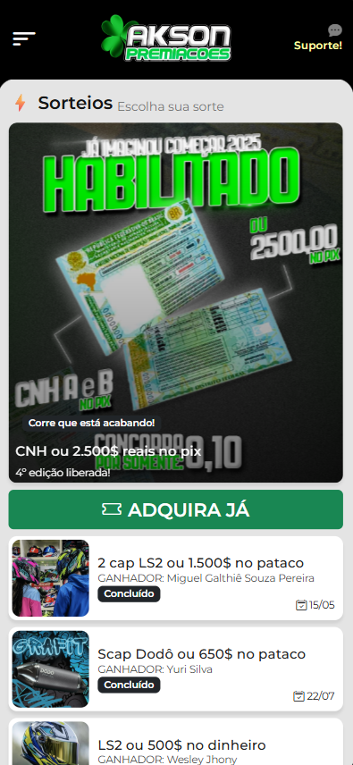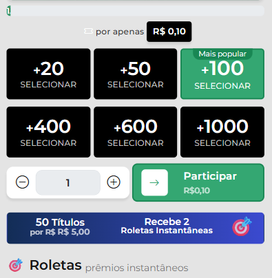 Permita que o cliente compre a chance de ganhar prêmios surpresa na hora, gerando emoção, urgência e recompra.