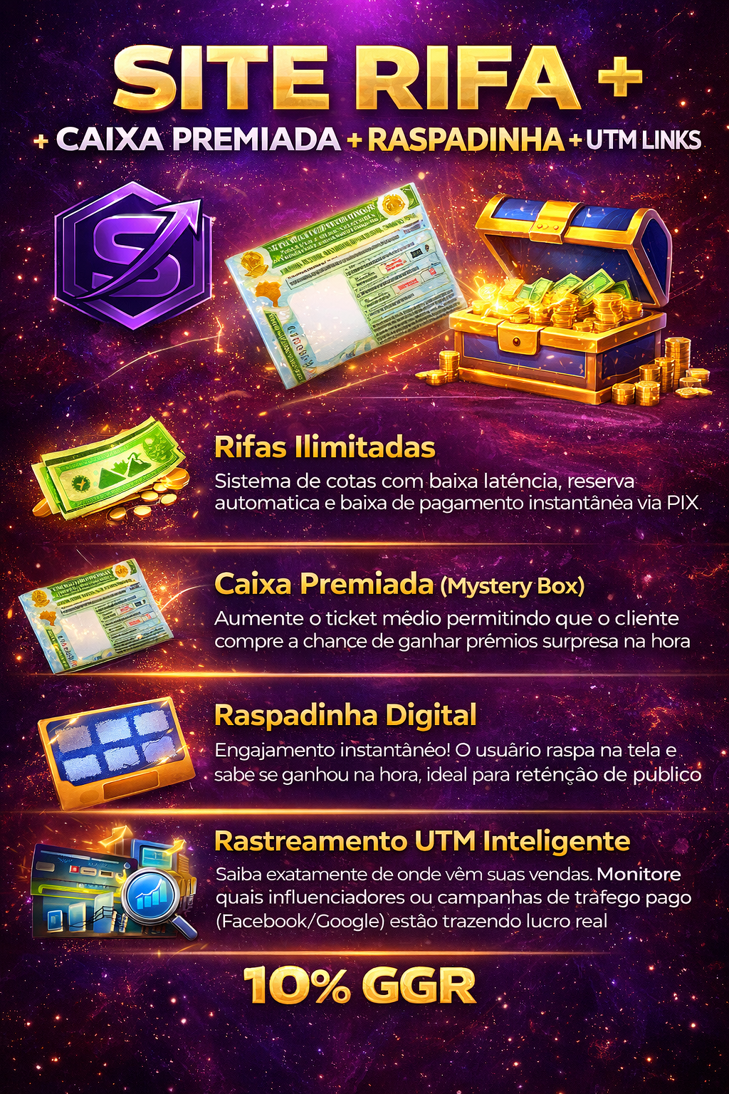 🎯 SITE COMPLETO DE RIFAS + CAIXA PREMIADA + RASPADINHA + UTM LINKS